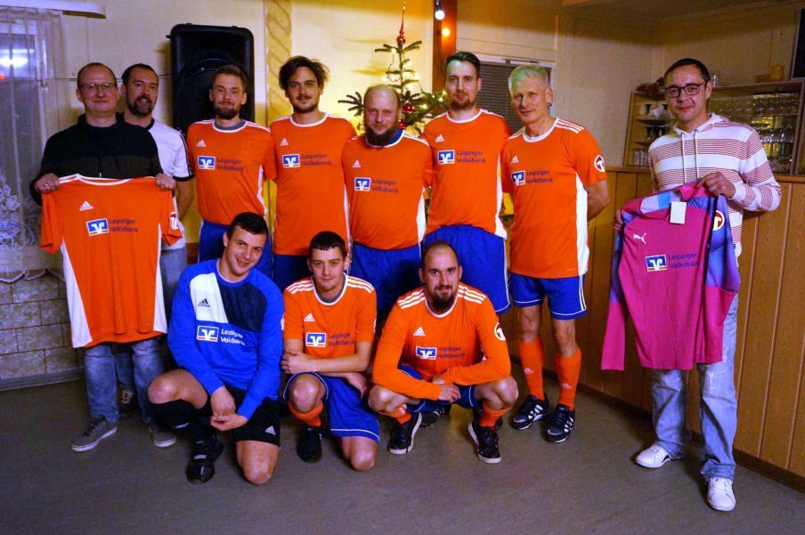 Im Rahmen der Weihnachtsfeier erhielt die Fussballmannschaft einen neuen Trikotssatz. Dank hierfür an die Volksbank Leipzig...
